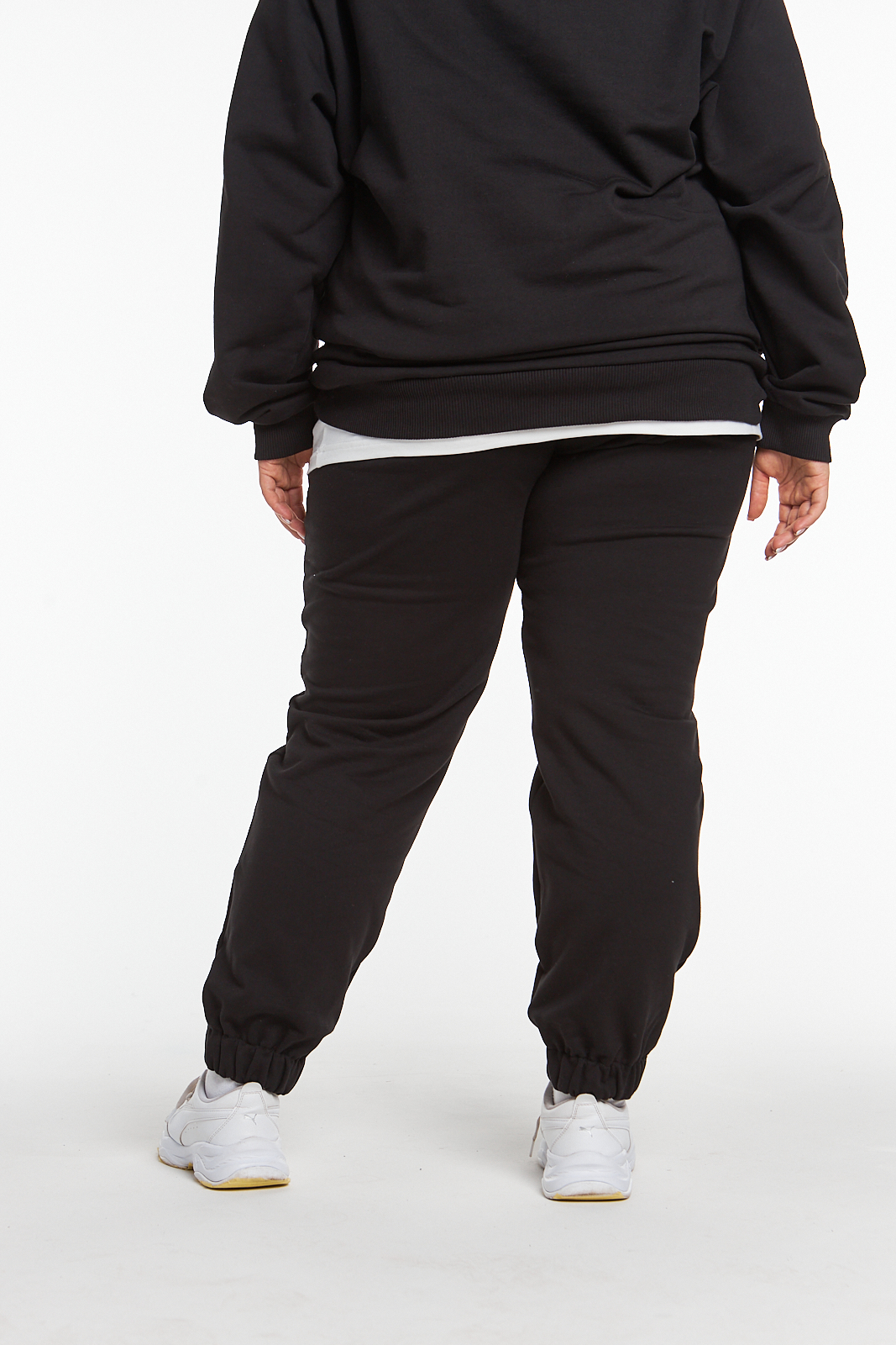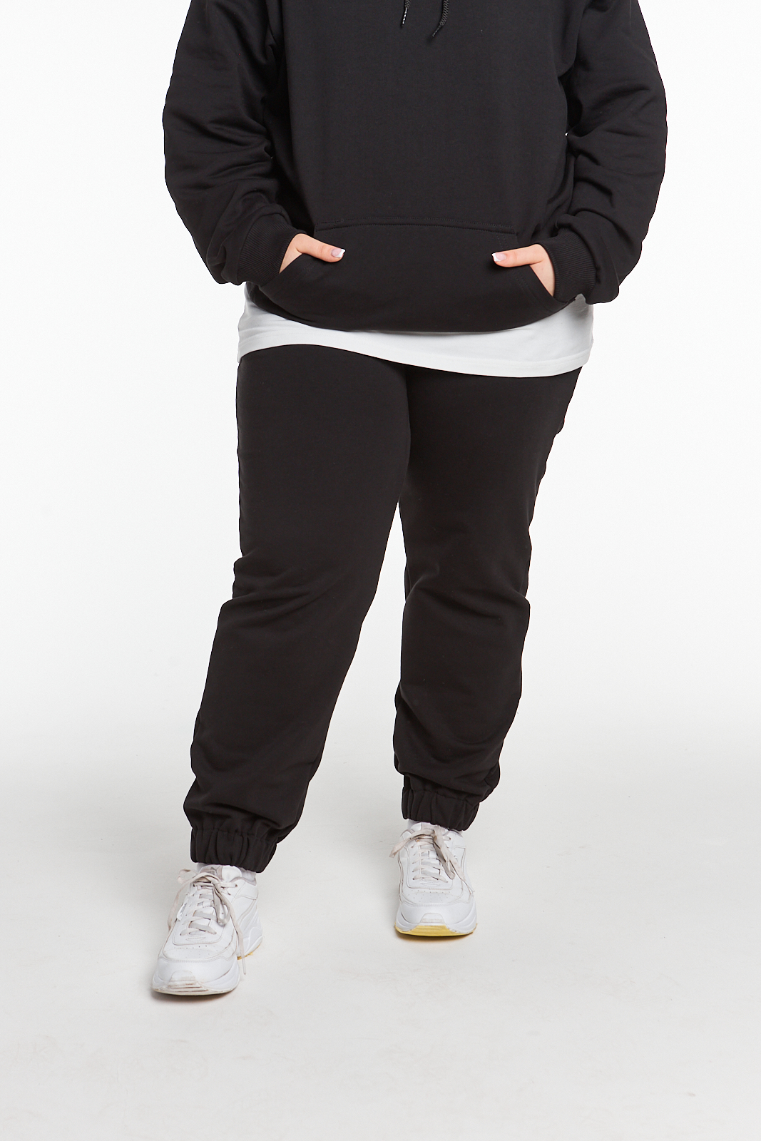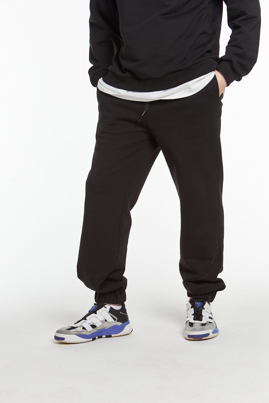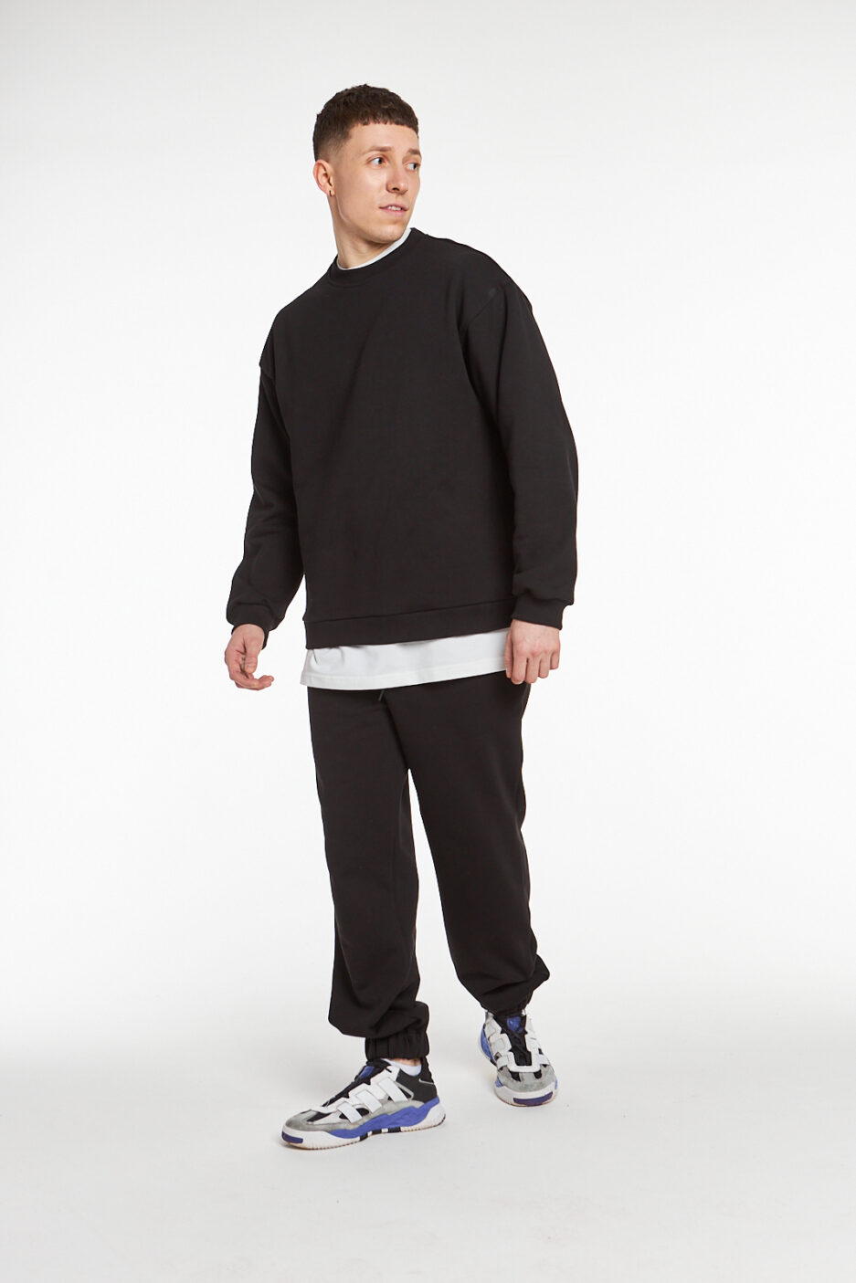штани у чорному кольорі — ідеальний для водночас базового та насиченого образу. при створенні штанів ми використовували щільний 100% котон, дуже м’який і приємний до тіла. завдяки цій якості тканини світшот підходить як для літа, бо дозволяє тілу дихати та пропускає повітря, так і для холодної пори року, бо натуральний склад зберігає тепло всередині