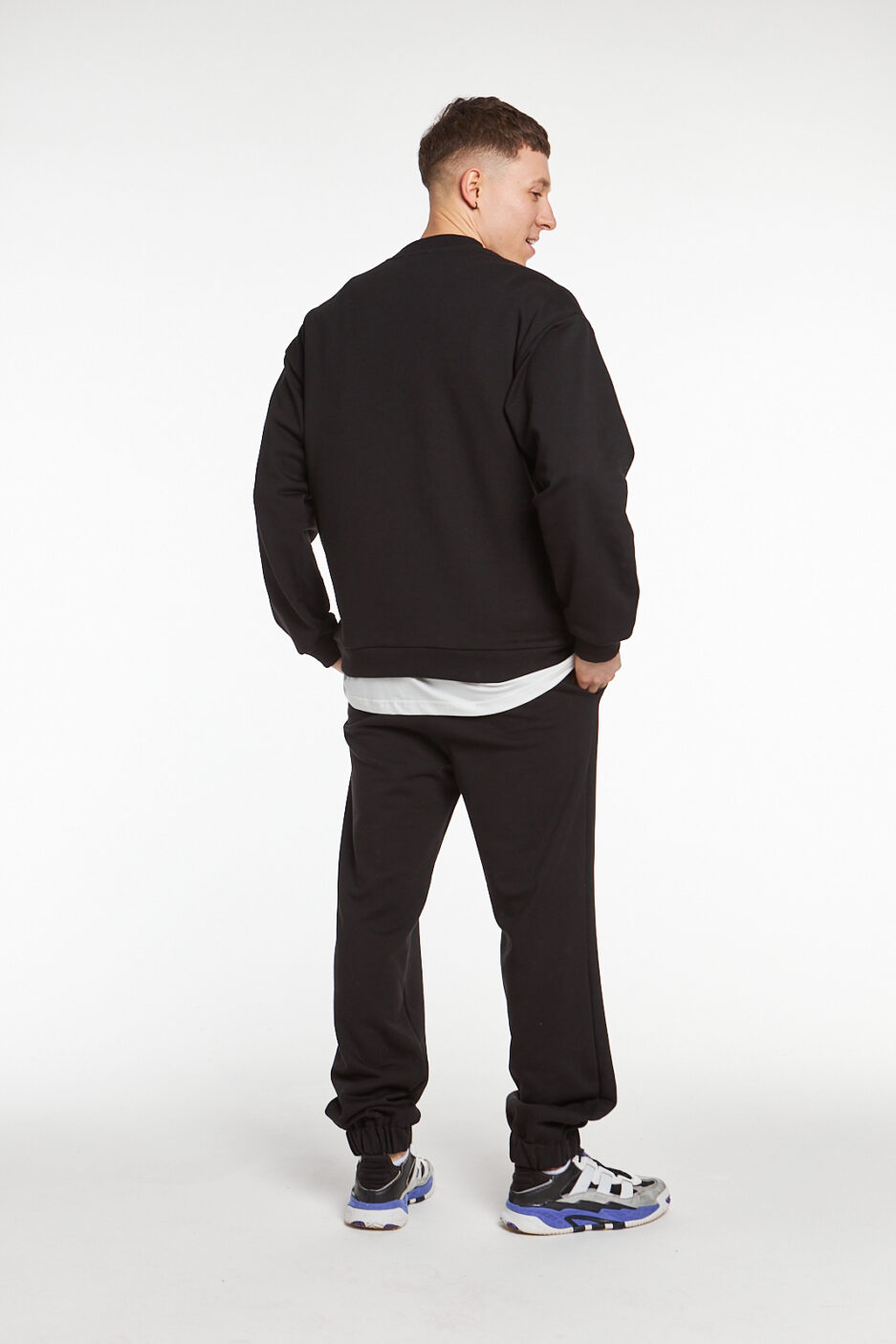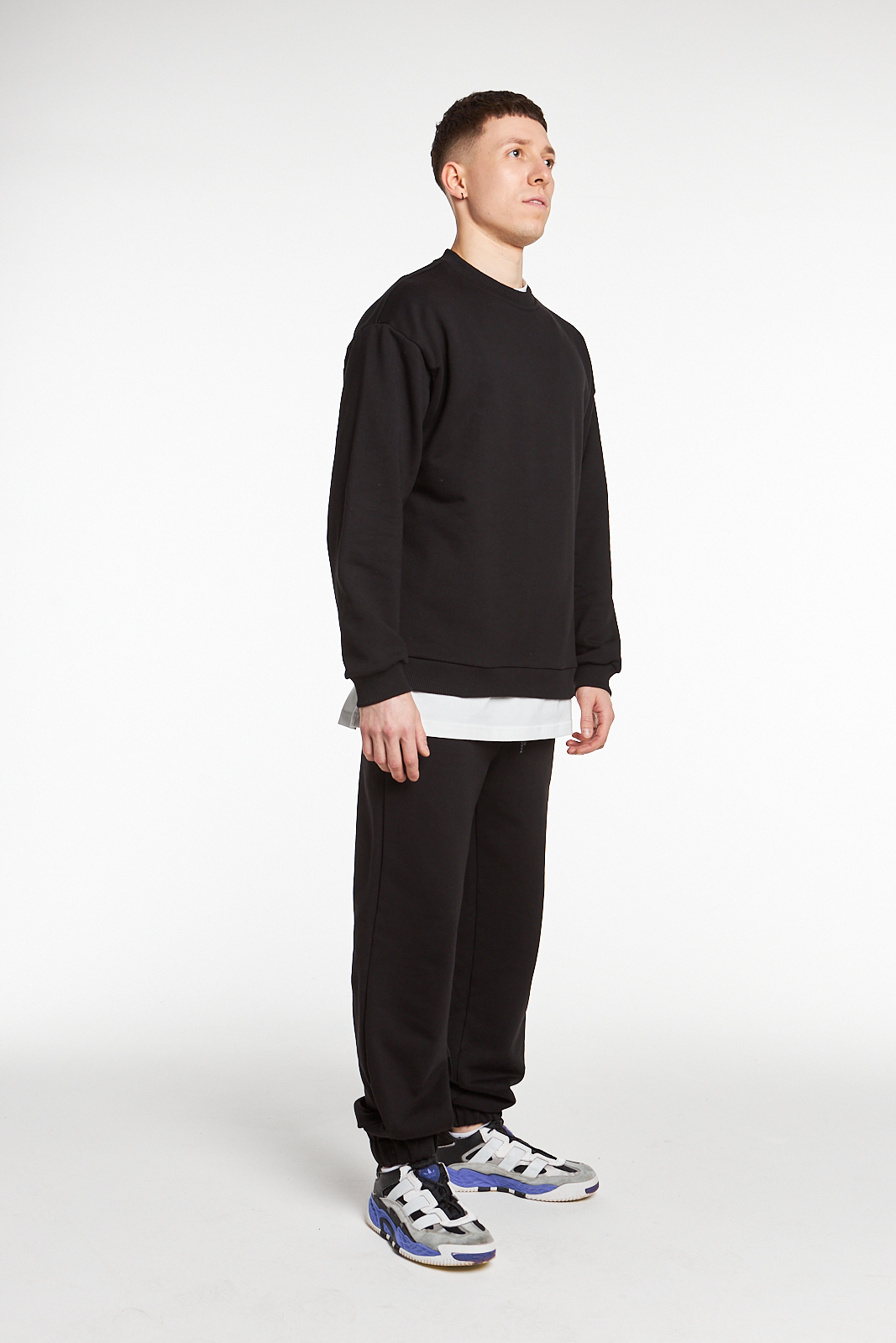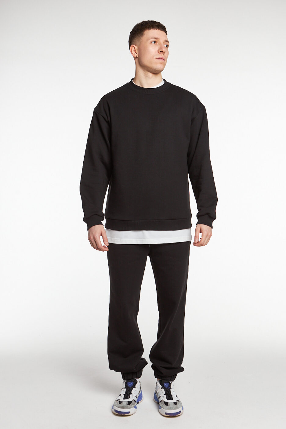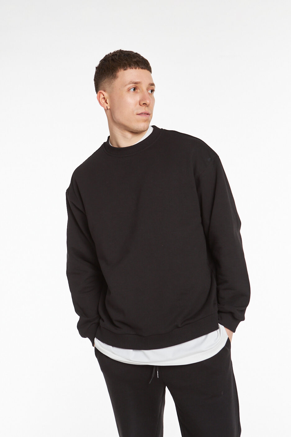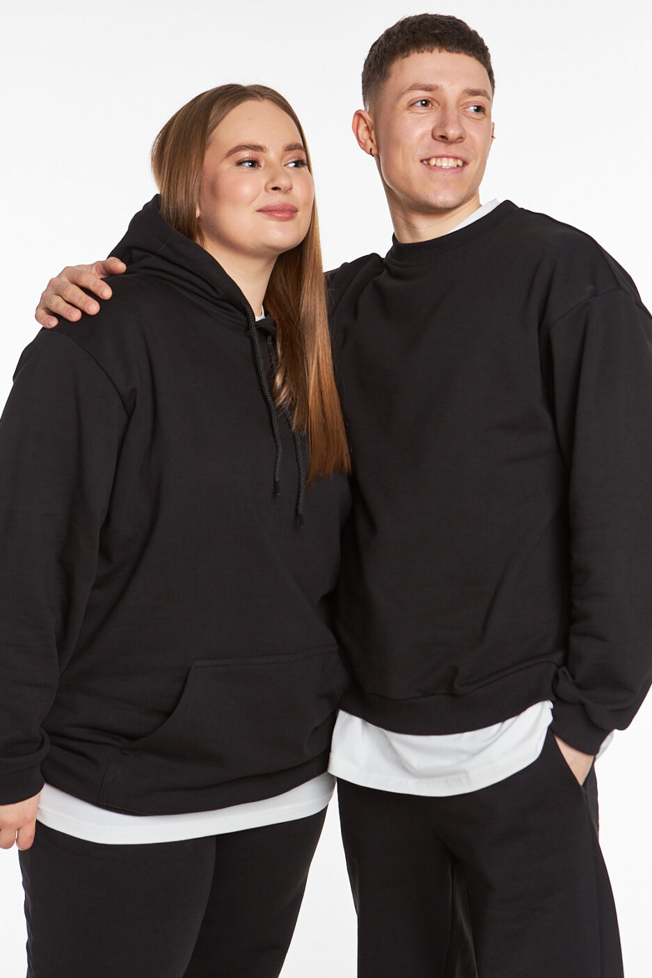 світшот у чорному кольорі — ідеальний для водночас базового та насиченого образу. він має вільний фасон, еластичні манжети і спущену лінію плеча, тому супер комфортний при створенні світшоту ми використовували щільний 100% котон, дуже м’який і приємний до тіла. завдяки цій якості тканини світшот підходить як для літа, бо дозволяє тілу дихати та пропускає повітря, так і для холодної пори року, бо натуральний склад зберігає тепло всередині