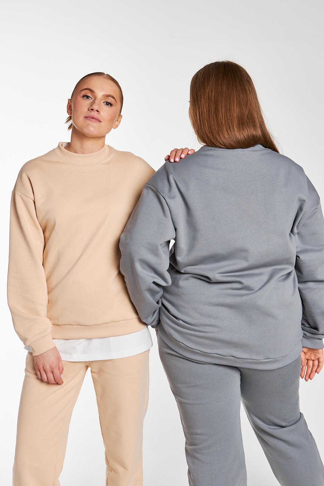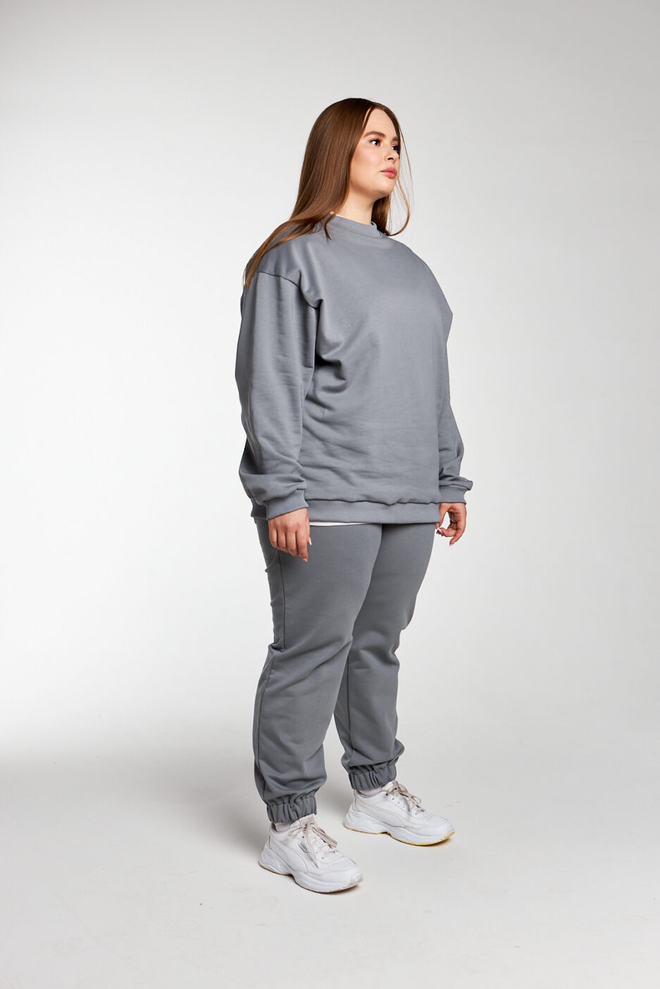 світшот у кольорі графіт — ідеальний для водночас базового та насиченого образу. він має вільний фасон, еластичні манжети і спущену лінію плеча, тому супер комфортний при створенні світшоту ми використовували щільний 100% котон, дуже м’який і приємний до тіла. завдяки цій якості тканини світшот підходить як для літа, бо дозволяє тілу дихати та пропускає повітря, так і для холодної пори року, бо натуральний склад зберігає тепло всередині